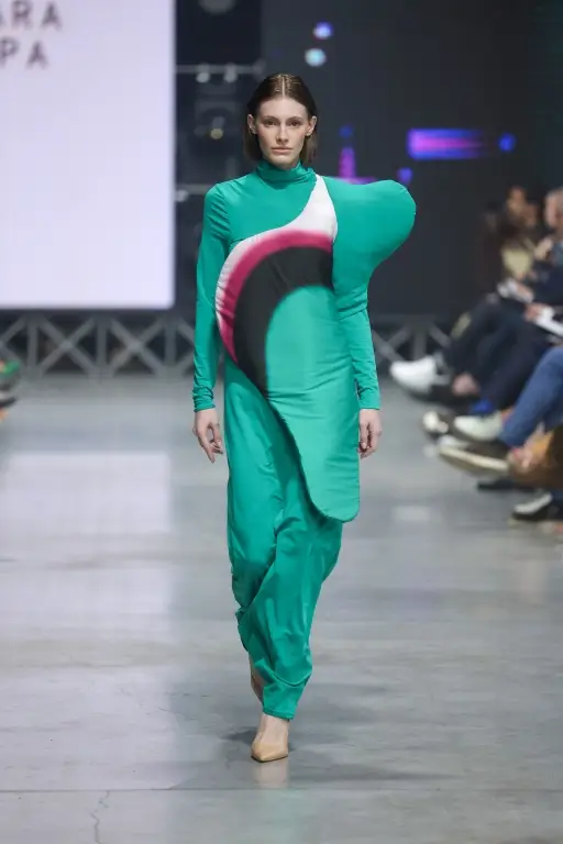 La collezione nasce da un’esigenza comunicativa connessa alla sfera emozionale, che trova la propria evoluzione nel colore e nella forma, volta a comporre un linguaggio in relazione al corpo, trasferendo un significato che identifica il bisogno di coesione ma anche di diversità. Il corpo primordiale originariamente privo di stimoli si evolve grazie alle emozioni, ponendosi come possibile traccia comune per un linguaggio in evoluzione.