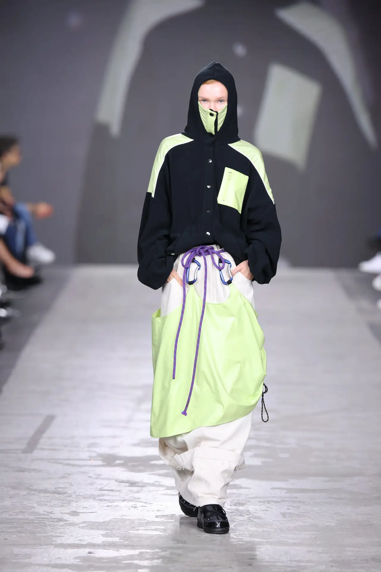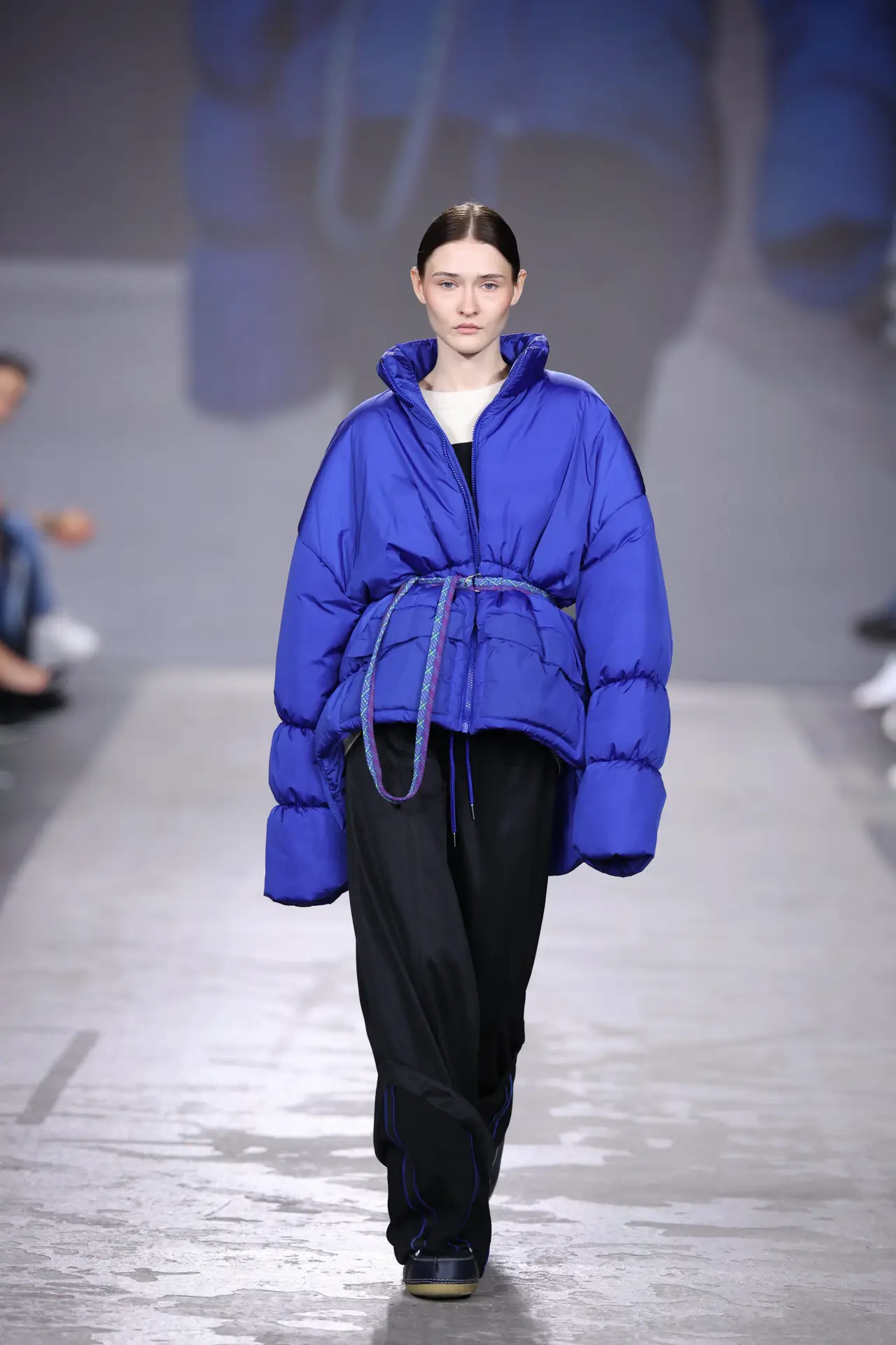 La capsule donna “Sui propri passi” rappresenta un percorso che si suddivide in quattro fasi: l’essere bambini, la crescita e l’età adulta, durante la quale si sente il bisogno di voler rivivere le età precedenti. L’essere bambini rappresenta, infatti, un periodo di certezza, spensieratezza, sicurezza e libertà che per la designer viene raffigurata dalla montagna. La crescita è un periodo di transizione e cambiamento durante il quale aumentano responsabilità e consapevolezze. Segue l’età adulta, un momento di incertezze, ostacoli e solitudine nell’affrontare i problemi con l’aumento delle responsabilità. Tutto ciò porta ad un bisogno di sentirsi protetti (e non in dovere di proteggere) da cui ne deriva un forte desiderio di ripercorrere i propri passi.