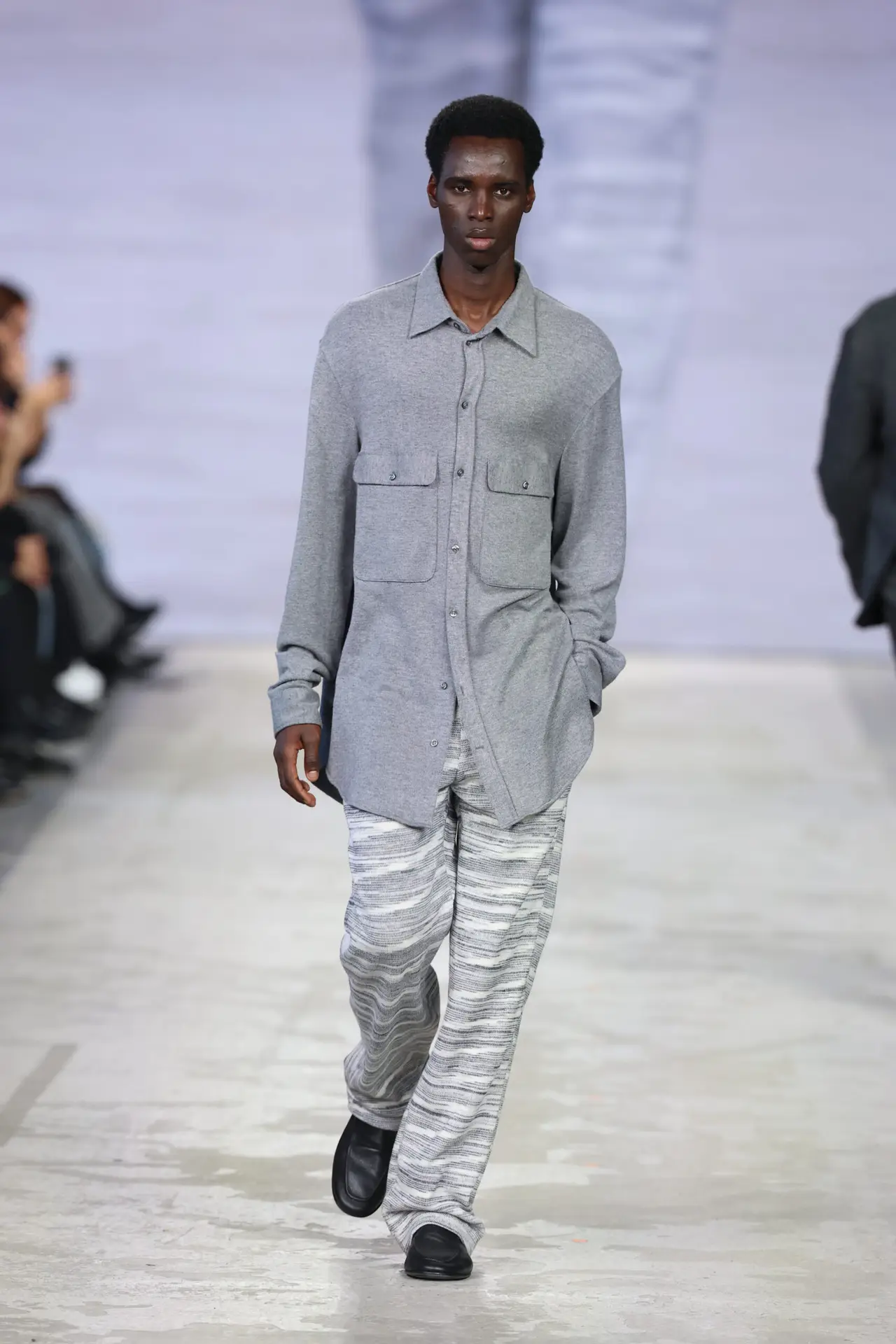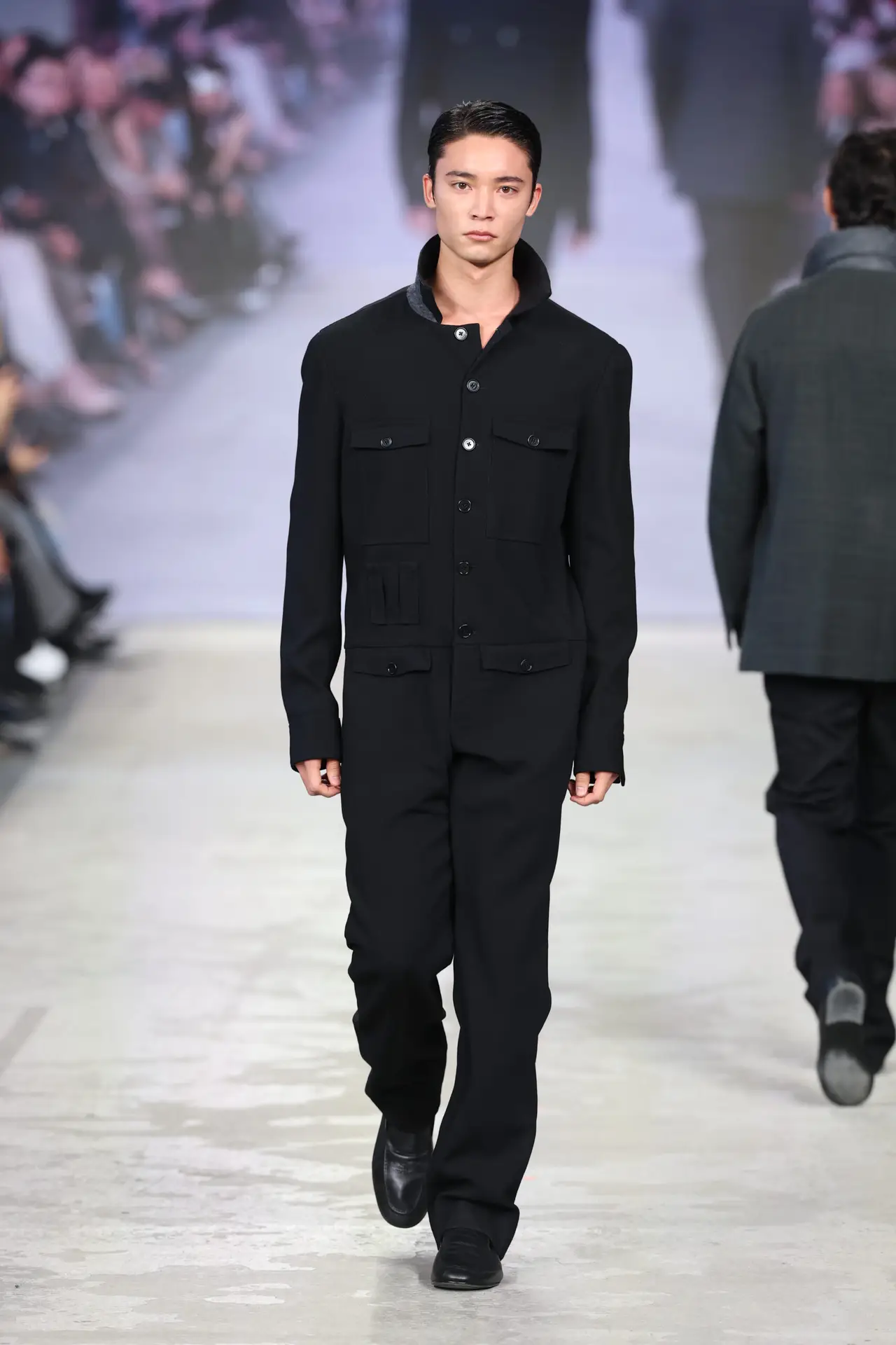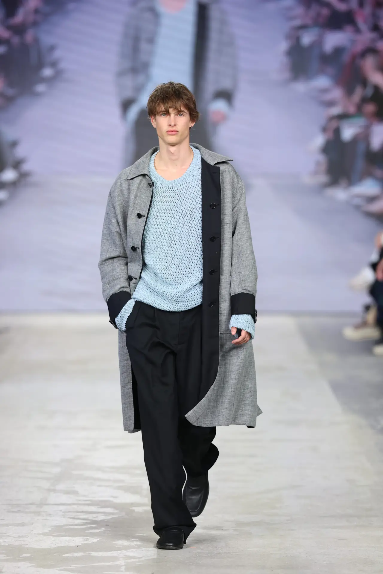 L’unione di questi due mondi, supportata da tessuti che ne riflettono l’incontro, dà vita a capi che conservano la loro praticità ma in una forma elevata, pensati per resistere nel tempo, essere curati, vissuti, tramandati. Questa per il designer, rappresenta la vera sostenibilità.